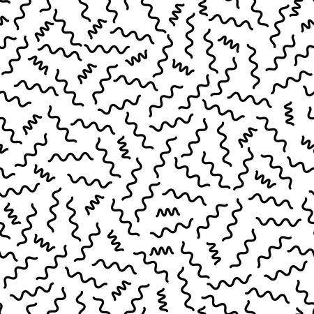 黒と白の波線ジグザグ ジグザグ線で幾何学的なメンフィスのパターン 80 年代と 90 年代のグラフィック デザイン スタイルです ベクターのシームレスな背景 のイラスト素材 ベクタ Image 6230